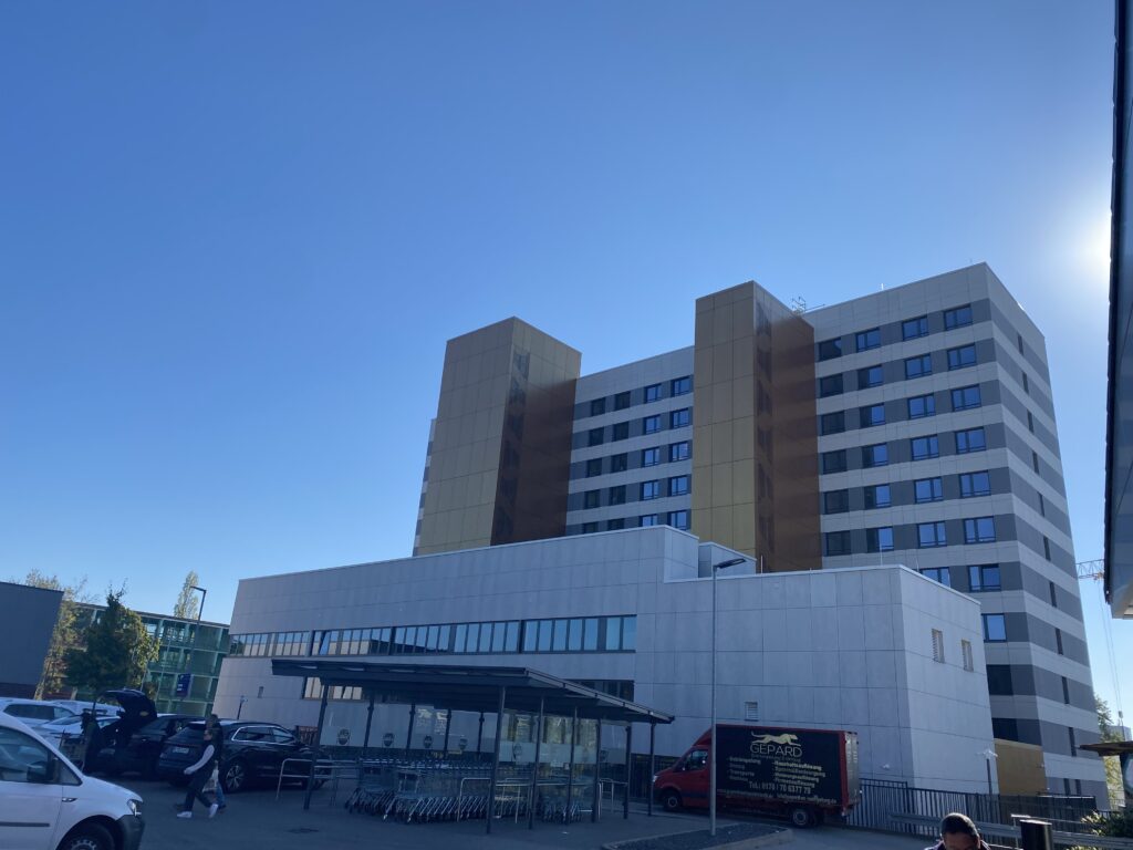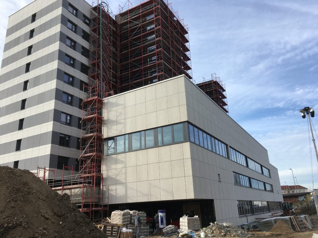 Das KJS-Hochhaus, ein 1974 erbauter Elfgeschosser in der damals typischen Plattenbauweise, steht seit rd. 20 Jahren leer. Ab Sommer 2021 wird das Haus saniert und durch einen Neubau ergänzt.